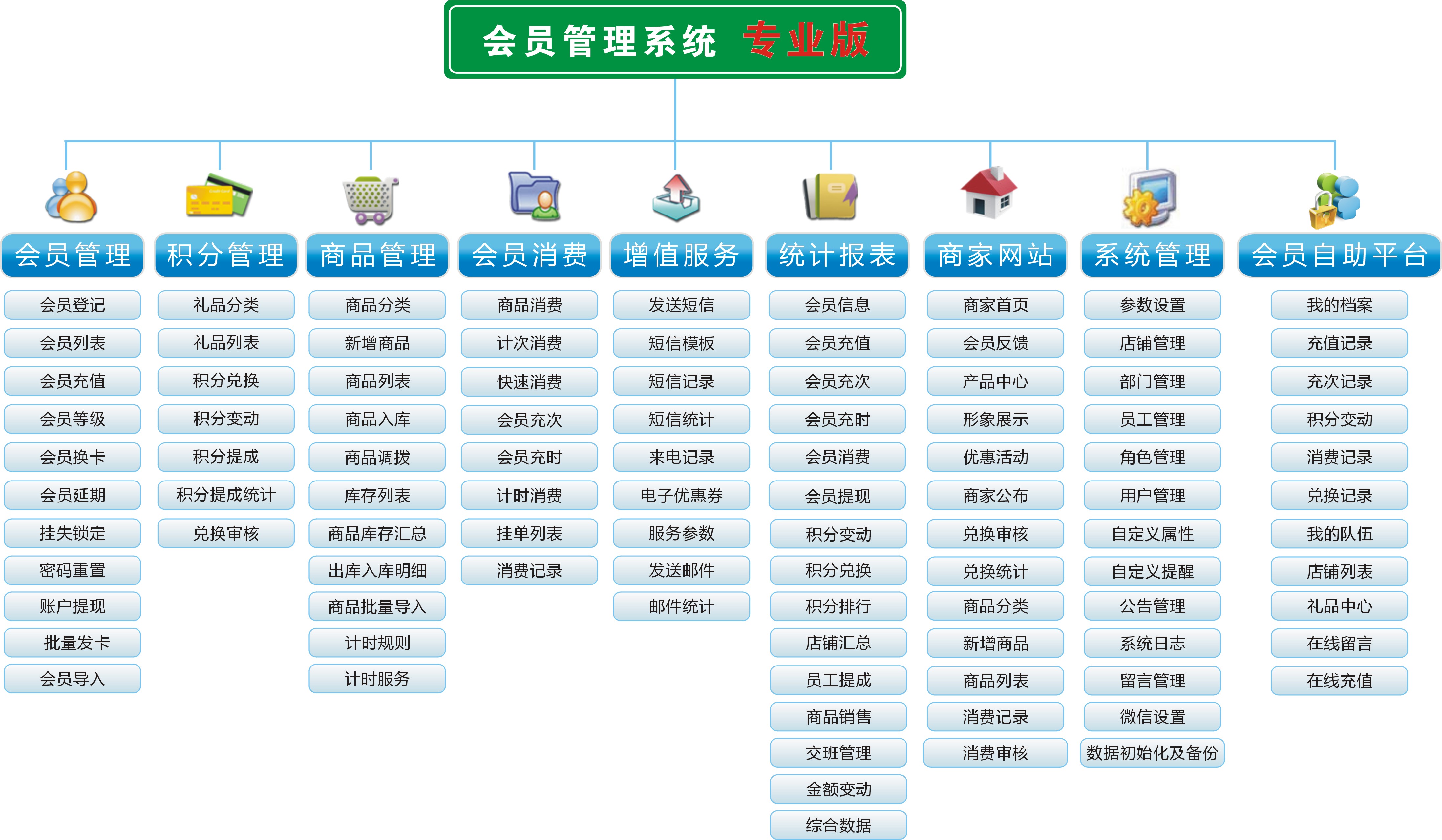 本系統(tǒng)功能強大、操作簡單、無需安裝、采用BS架構(gòu),只需一根網(wǎng)線即可全國統(tǒng)一管理。其主要有 會員管理、積分管理、商品管理、會員消費、增值服務(wù)、統(tǒng)計報表、商家網(wǎng)站、系統(tǒng)管理等大模塊 可以對分店管理及各種消費數(shù)據(jù)分析!其適用于醫(yī)藥連鎖,美容美發(fā)連鎖店、超市連鎖店、服裝店連鎖店、母嬰店連鎖店、健身房連鎖店、 KTV連鎖店、俱樂部連鎖店、會所連鎖店、 理發(fā)店 連鎖店、汽車美容連鎖店、洗車連鎖店、鞋城飾品店等連鎖行業(yè)。