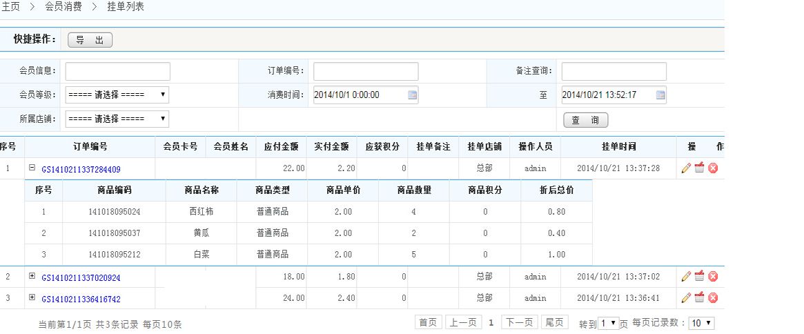 可根據(jù)會(huì)員信息、訂單編號(hào)、掛單時(shí)間等信息查詢特定的掛單記錄;
